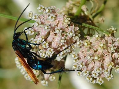 Feeding on sap from a rush milkweed, at Lake Mead National Recreation Area, Nevada